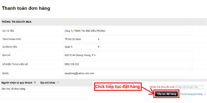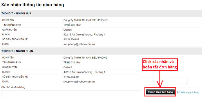 - Quý khách kiểm tra lại thông tin đơn hàng và nhấp chuột trái vào "