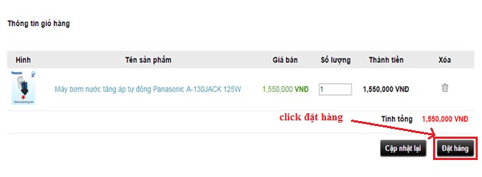 + Đặt hàng: Nếu Quý khách đã xác nhận xong sản phẩm trong Giỏ hàng, Quý khách nhấp chuột trái vào biểu tượng