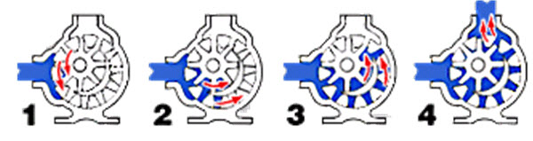 Đồng thời, ở lối vào của cánh máy bơm tạo nên vùng có chân không và dưới tác dụng của áp suất trong bể chứa lớn hơn áp suất ở lối vào của bơm, chất lỏng ở bể hút liên tục bị đẩy vào bơm theo ống hút, đó là quá trình hút của bơm.